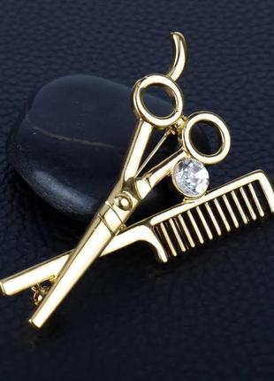 Брошка у вигляді інструментів для волосся. Відмінний подарунок перукаря. Підійде і жінці і чоловікові. Розмір 6,3х4,3см. Кольори: золото, рожевий.