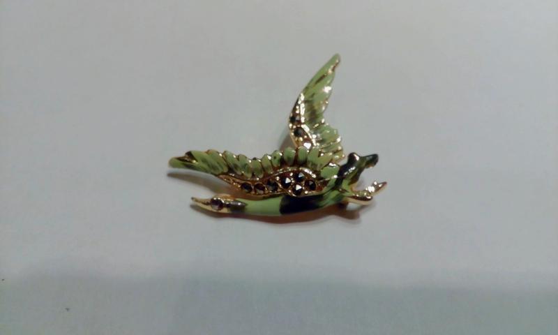Красивая брошь птица с эмалью и позолотой. Состояние идеальное