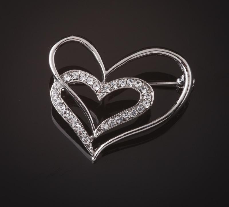Брошь сердца стразы белые