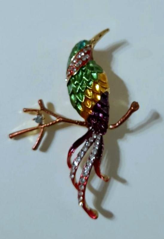 Брошь радужная птица
