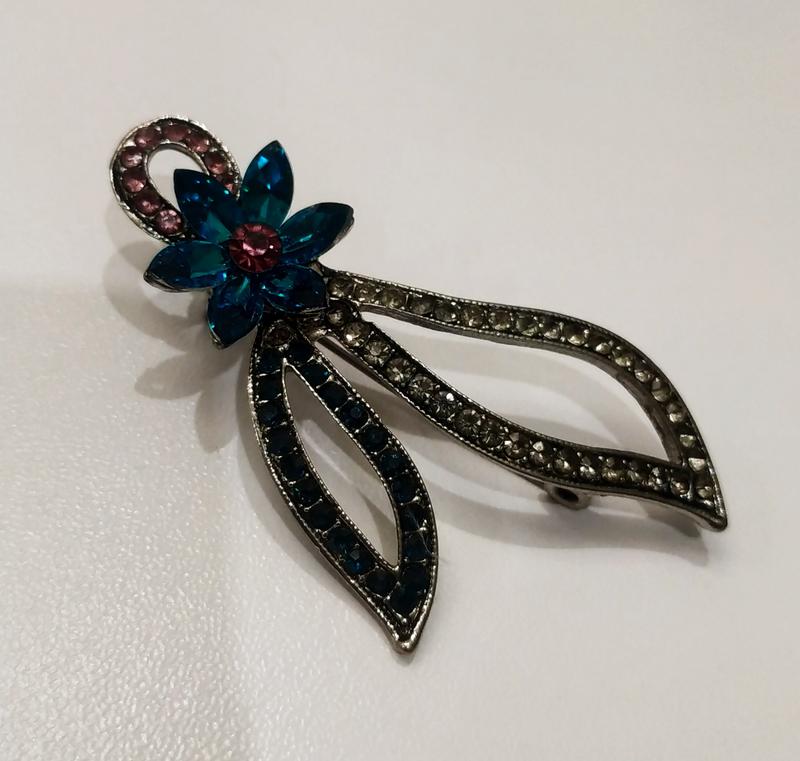 Красивая брошь. Бижутерия. Куплена в Иордании. Камушки голубого, белого и черного цвета.