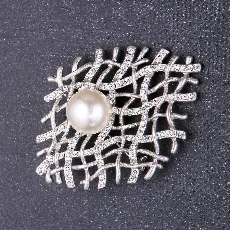 Брошь паутинка стразы "перлина"