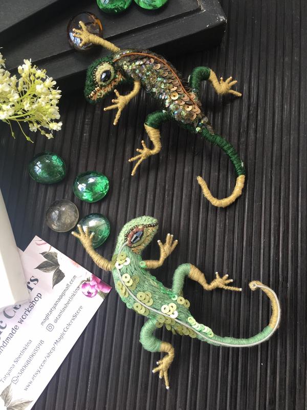 Брошь в виде ящерицы символизирует проворство, дипломатичность, живучесть, острый ум и умение выходить из самых сложных ситуаций с честью и выгодой для себя . Носите броши будьте самыми красивыми и неповторимыми. Размер броши по крайним точкам-10*7 см.Брошь очень легкая.