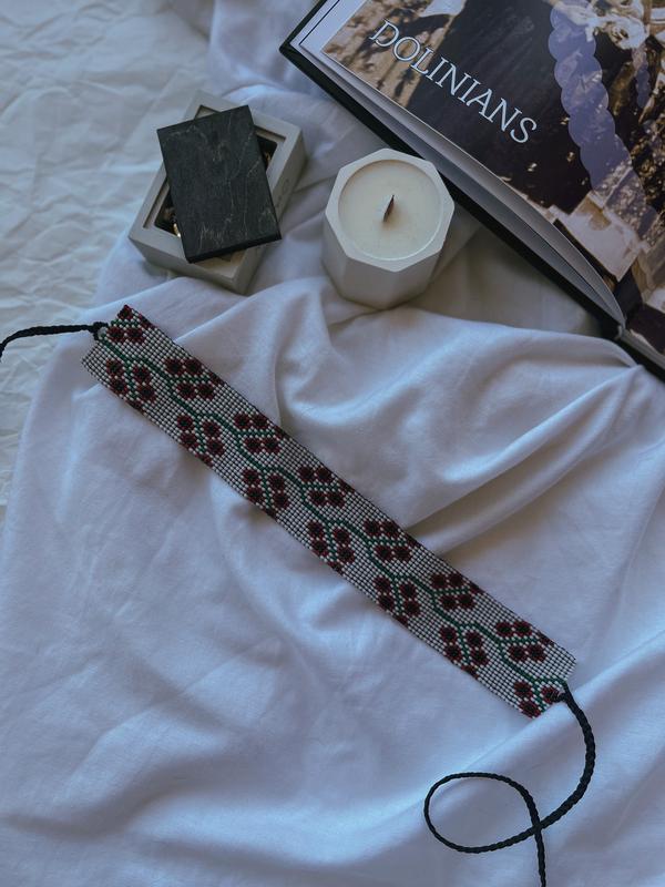 Украшение на шею выполнено в этно стиле. За основу брала зверь из вышитой рубашки. Изготовление в технике ручной ткацки.