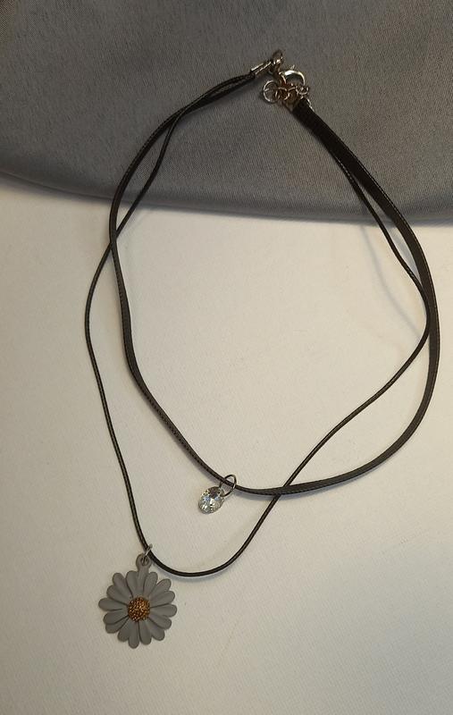 Чокер двойной. на одной изюме прозрачный камень, на другой ромашка. длина 38см