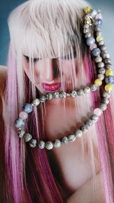 Бусины натуральной яшмы, 6 мм, розового кварца, содалита, агата. Общая длина чокера 38 см. Фурнитура высокого класса, родированная. Дополнительные фото по запросу.