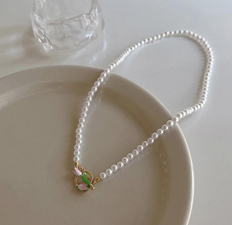 Очень нежное украшение, бусины сделаны под жемчуг, застежка тюльпан