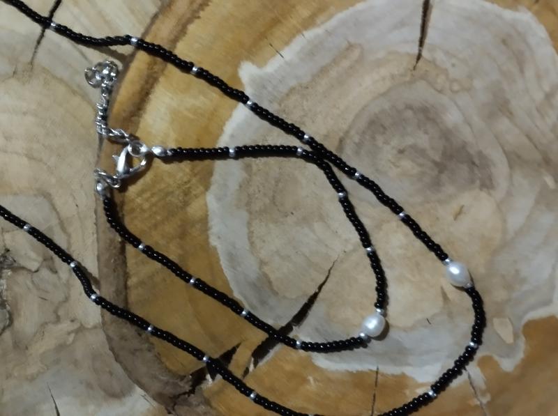 Чокер +браслет изготовлены из чешского бисера и натуральной речной жемчужиной.