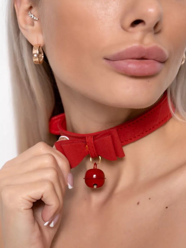 Чокер на шею Внешняя часть чокера и бантик - замша. Внутренняя часть чокера - эко-кожа. Звоночек железный. Цвет: красный ❤️ Длина изделия 43 см. 5 делений: 29 см; 31 см; 33 см; 35 см; 37 см. Бантик 6х3 см; Звоночек 2х2.3 см; застежка 3х2.3 см.