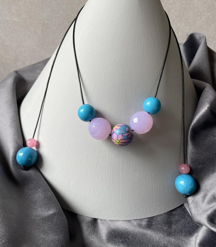 Чокер из прессованного камня, с кварцем, бусинами чешского производства и бусиной с центральным элементом из полимерной глины Защелка - плетение шамбалла, очень удобная в использовании и позволяет выбирать удобную для Вас длину. Импровизированные кисти из камней будут украшать вашу спинку, или же их можно носить спереди, оригинально дополняя чокер