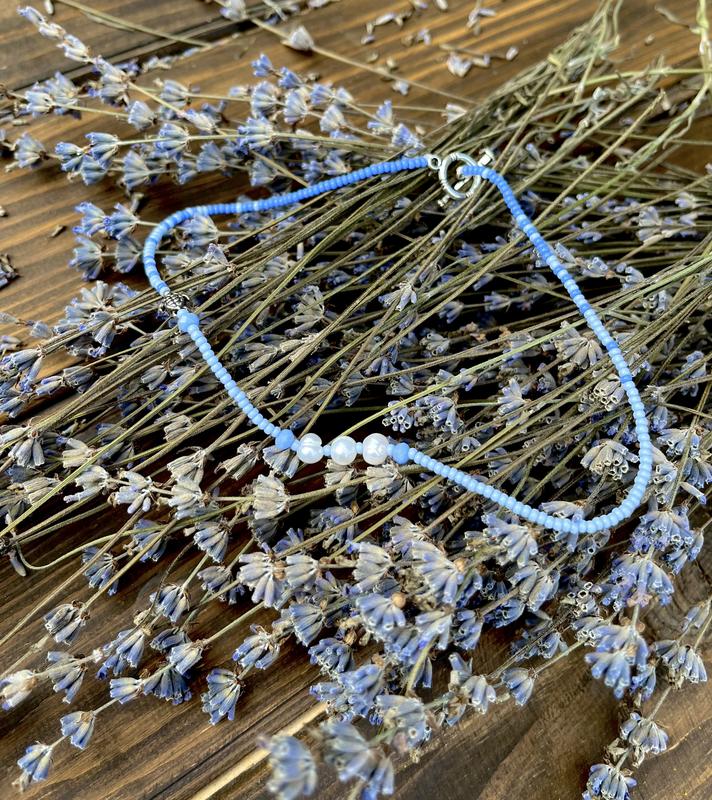 Made in Ukrainian 💙💛 В наявності! Складається з перлин, гальваніки та чешського бісеру 🌸 Довжина чокера 34см ., основа - силіконова резинка. Дуже зручний замочок.