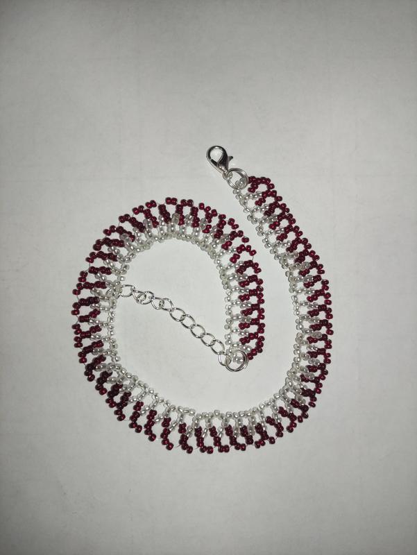 Чокер с якісного чеського бісеру, ручна робота. Дуже гарно виглядає на шийці. Ширина - 1 см. Довжина - 28 см + 7 см застібка.