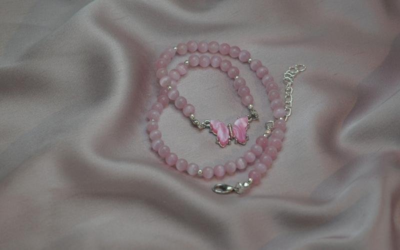 Чокер из камня кошачий глаз "розовый"+ коннектор бабочка d-6мм l-41-45мм