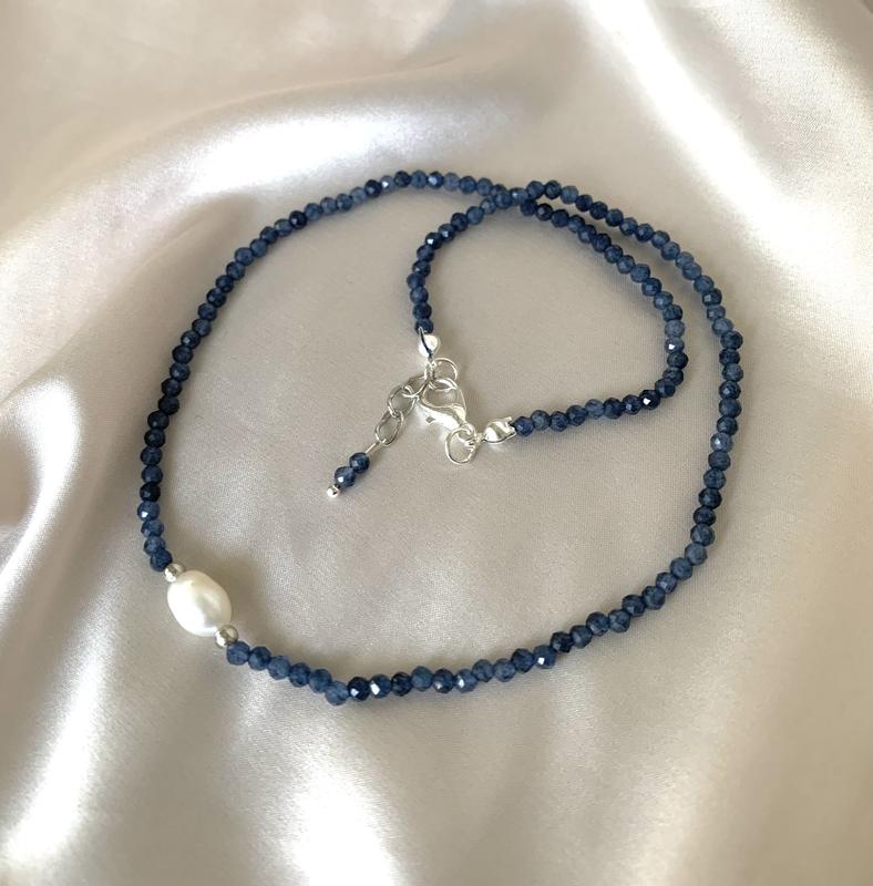 Невероятный, изысканный чокер с жемчужиной и сапфирами. Отлично сочетается даже с простой футболкой. Длина регулируется.
