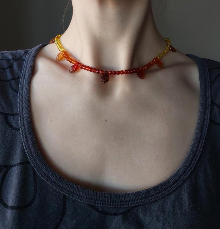 Чокер с осенними листочками (No2) ✨️Материалы - стекло ✨️Фурнитура - нержавеющая сталь в золотистом тоне ✨️Основа - ювелирный тросик ✨️Длина 39 см + 4 см удлинитель 🏷550 грн
