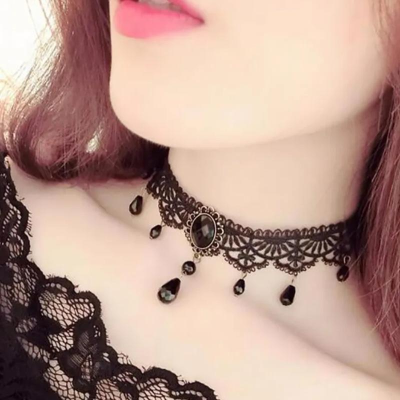 Красивый кружевной чокер черного цвета в стиле винтаж, готика для создания романтических образов, фотосессий, тематических вечеринок.