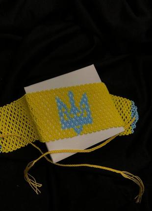 Чокер выполнен из чешского бисера в патриотических цветах. Ширина - 5,8 см Длина - 28,5 см + завязки