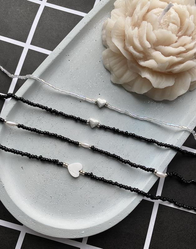 Чокер сердце сердечко чёрный белый перламутровый хамелеон из бисера колье украшение