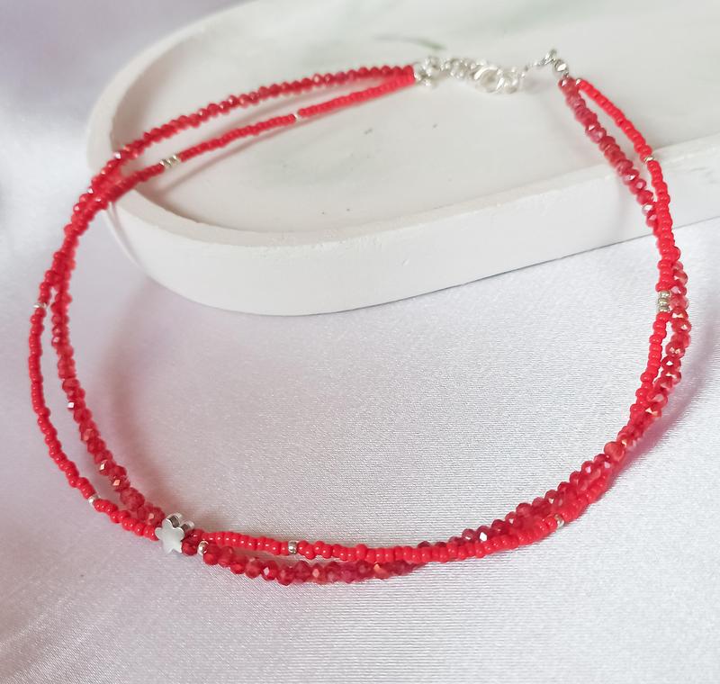 Чокер из японского бисера и бусин красно цвета.