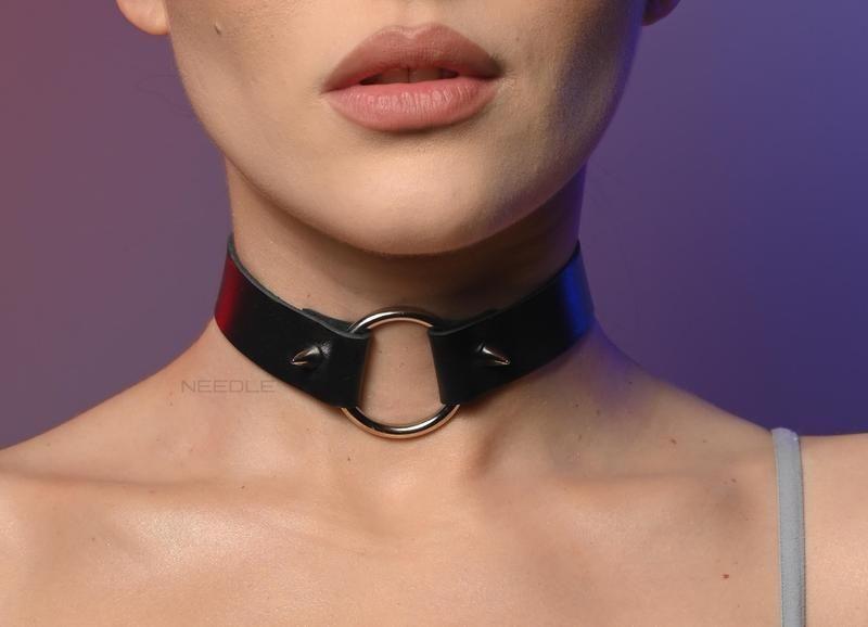 Чокер женский с шипами с большим кольцом 606