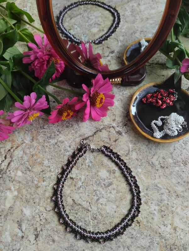 Фантастический чокер, который подойдет не только под повседневный образ, но и для важного события Длина 31 см (+ 4 см цепочка) Изготовлена вручную из бисера, она поражает своей красотой и уникальностью. Чокер в наличии одна штука. Возможна вготовка по заказу в других цветах.