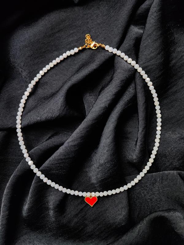 Бусы из новой коллекции украшений "Сердце" подвес красный с эмалью перламутр натуральный фурнитура мед сталь в позолоте удлинительная цепочка 5 см *цвет может отличаться в зависимости от настроек телефона