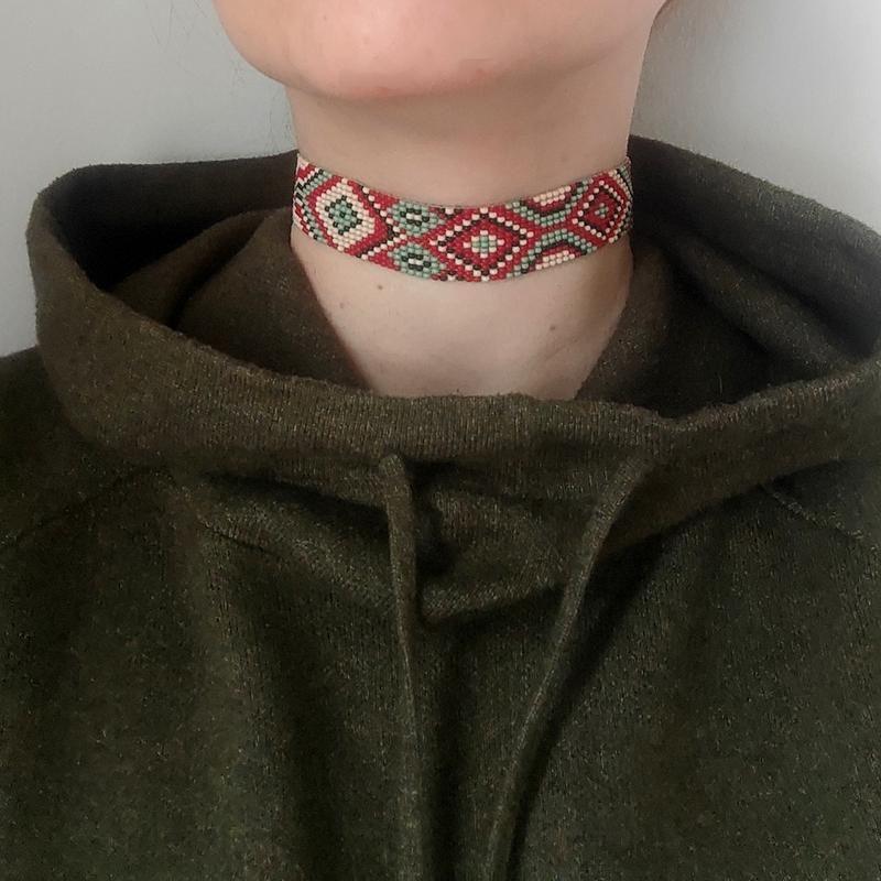 Етнічний чокер на шию. Сплетено на армованій нитці - вона не рветься, буде служити роками. Якісний чеський бісер. Авторська схема без точного повтору! Такий гердан буде тільки у тебе. Довжина: 24 см плетена частина та 13 см подовжуючий ланцюжок. Ширина: 2,2 см Дополнительные характеристики: Материал : Бисер