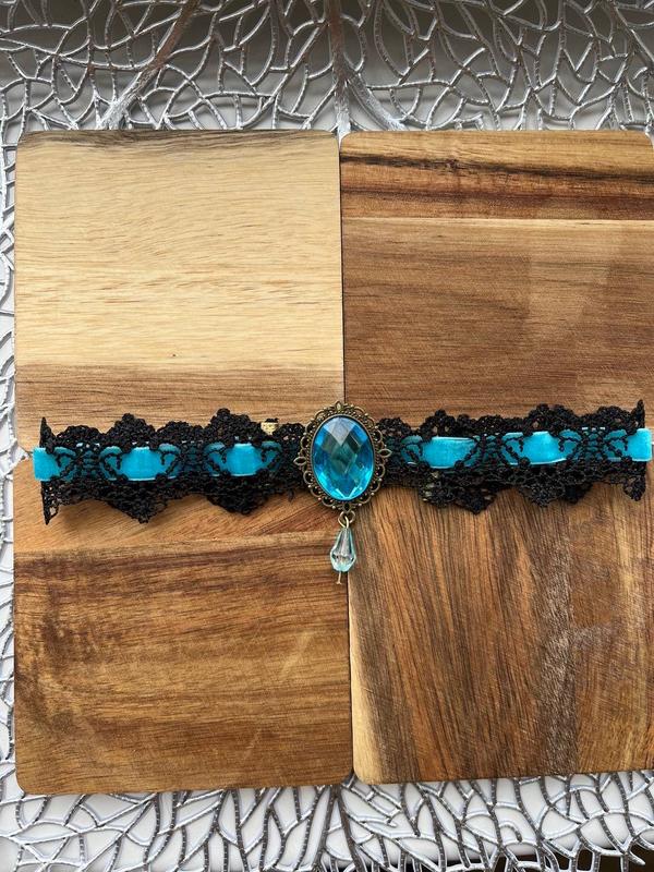 Чокер на шею, украшение на шею , с камнем , голубой ,ошейник, стимпанк