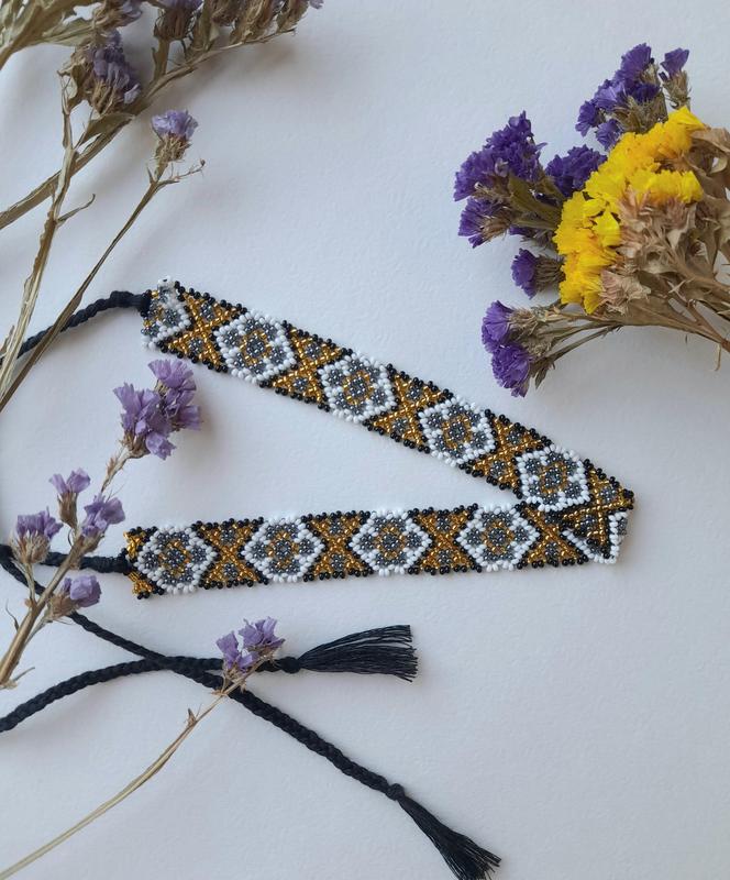 Ленточный гердан на завязках из бисера Длина - 30 см (+завязки) Ширина - 2 см Доставка Новая Почта или Укрпочта по подписке (200грн)
