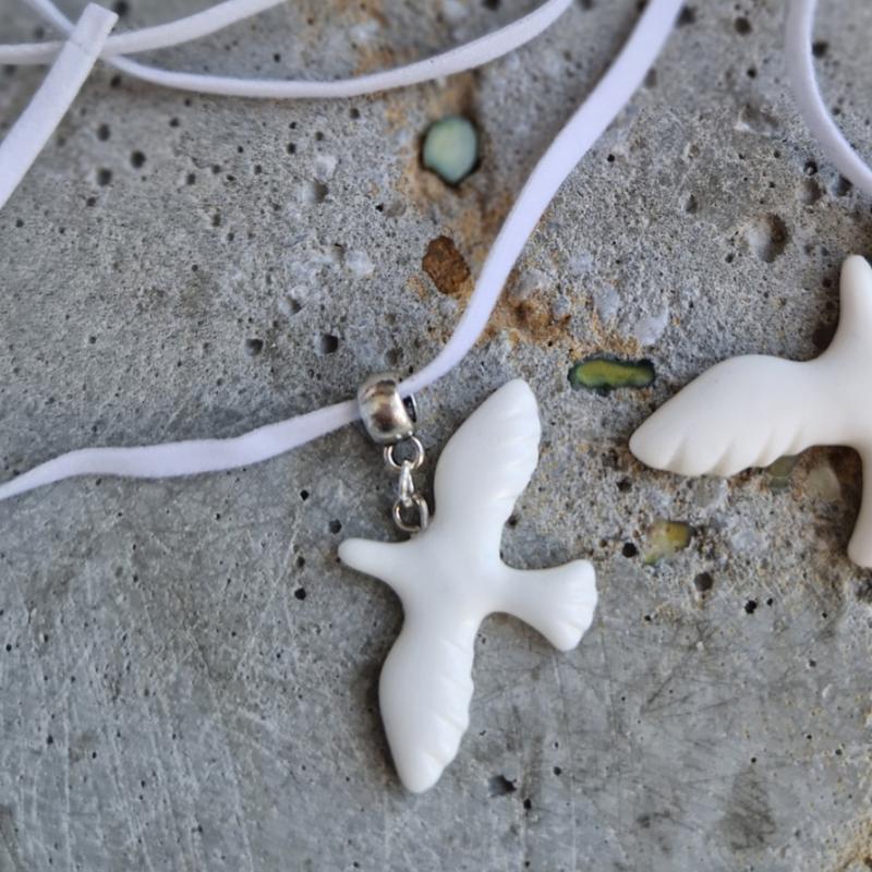 Чокер на шею на замшевом шнурке с подвесом ГОРЛИЦА. Белого цвета. Размер горлицы 3,2х2см.