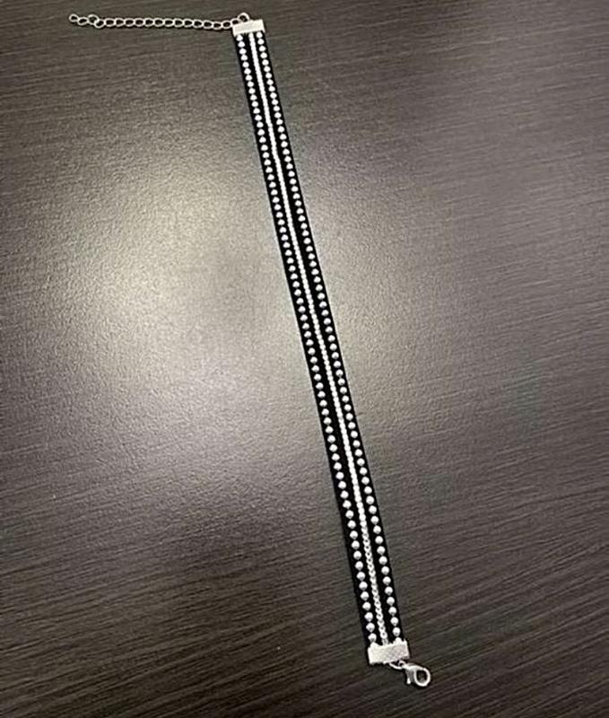 Эффектный чокер. Кристаллы и металл на бархате. Длина 25 см плюс удлиняющая цепочка 7 см. Ширина 1,5 см