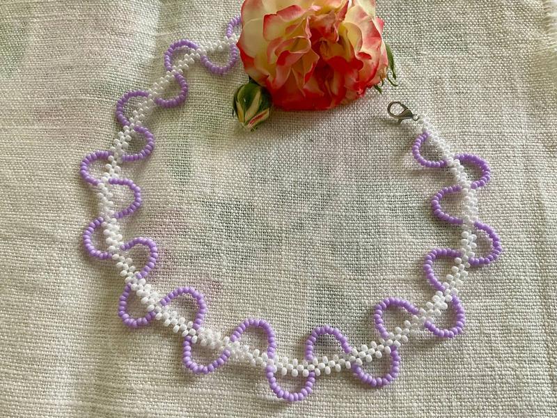 Чокер из бисера ручной работы 💖 Белый крестик с фиолетовой волной Хороший аксессуар на лето☀️ Женина по вашим параметрам 🫶🏽