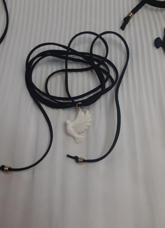 Голубка из ювелирной смолы, есть разные варианты в черном и белом цвете, шнурок замш, можно завязывать многими вариантами,очень стильно и красиво смотрится, сложи на Ваш вкус)