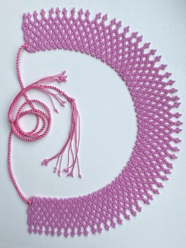 Силянка/чокер з бісеру, рожева силянка на зав'язках, прикраса з бісеру