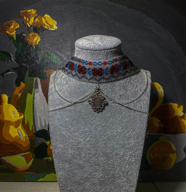 Гердан (чокер) ручной работы. Аутентичный узор Луганщины из книги Л. Бебешко «Украинские вышиванки» Длина 28 см. + завязки.