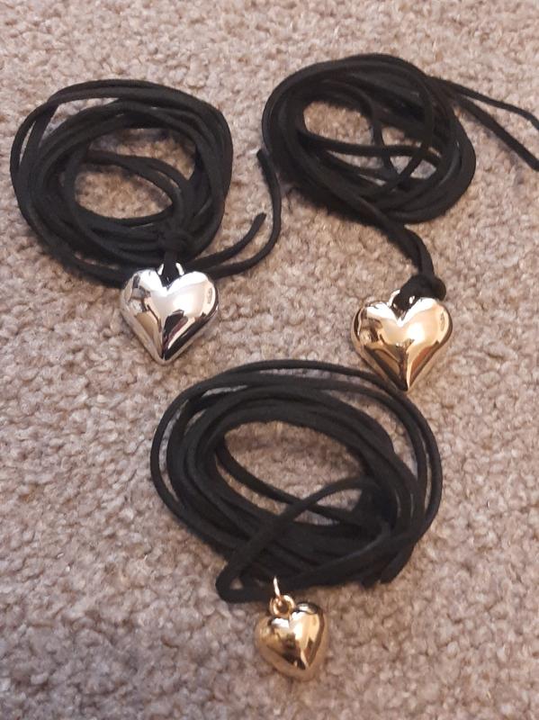Трендовый чоркер шнурок с золотым/серебряным сердечком. Размер подвески 2,5×2,4 см и 2*1,5 см. Длина 140 см. Цена 100 грн.