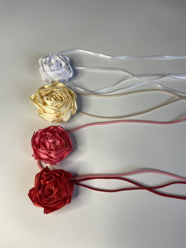 Чокер роза на замшевом шнуре или ленте Ручная работа Характеристика: Диаметр цветка 4-7 см; Длина шнура 1,5-2 м; Перед заказом уточняйте наличие цветов