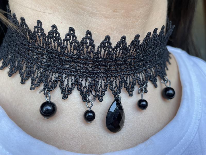 Красивый чокер на шею из черного кружева и украшений