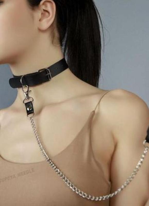 чокер поводок на шию золотой на липучке. черный на застежке.