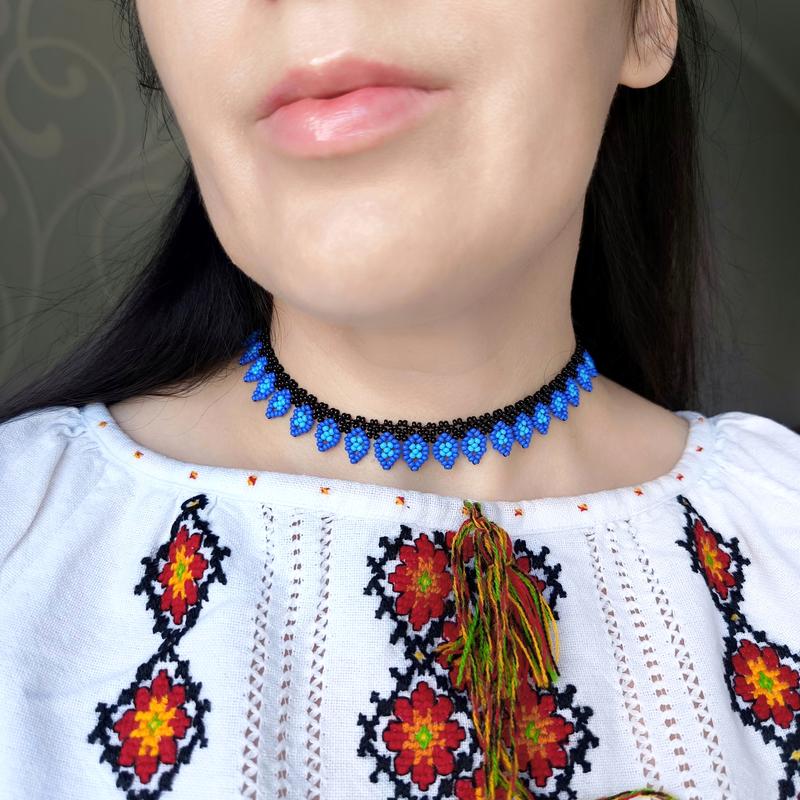Чокер из бисера💙🖤 🔹качественный чешский бисер Preciosa 🔹прочная нить для бисероплета 🔹фурнитура из медицинской стали (гипоаллергенная, не ржавеет) 📏Длина - 32 см + 5 см удлинитель. Возможно исполнение по вашим меркам. 📏Ширина – 1.8 см