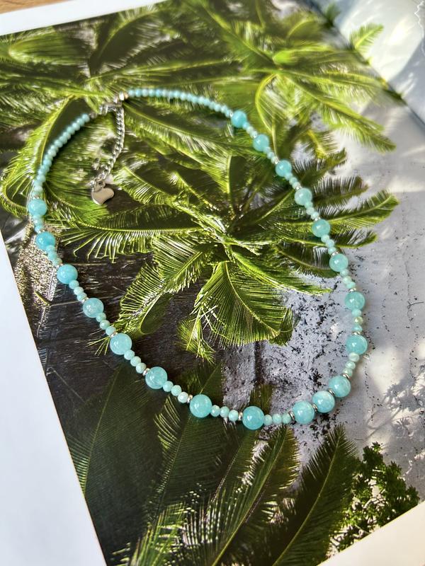 Чокер ручной работы амазонит и аквамарин Нержавеющая сталь Длина 38 см + 5 см удлинитель
