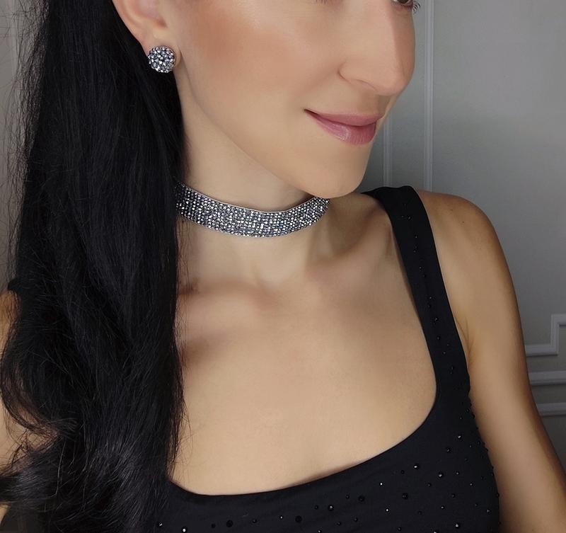 Чокеры хрустальные под шею черный,серебристый ручной работы