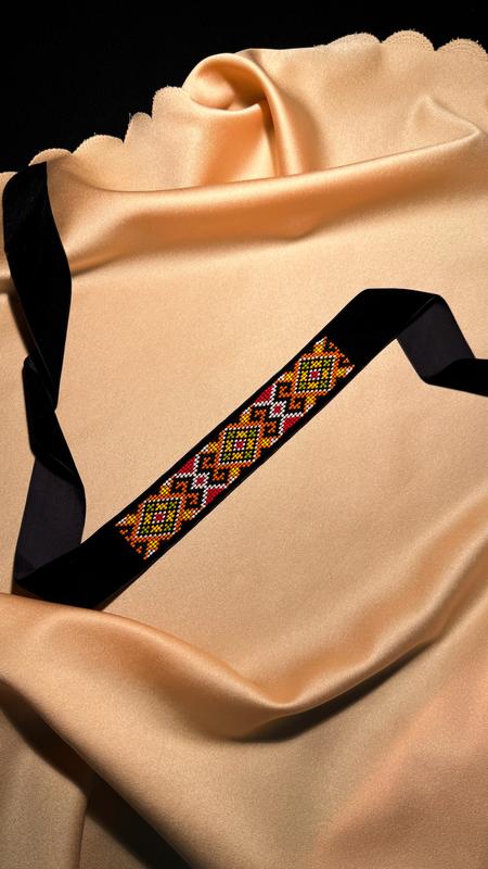 Гердан на черной бархатистой ленте 4 см. Длина ленты 1 м. Орнамент Гуцульский, Ксении Колотило. НОВИЙ