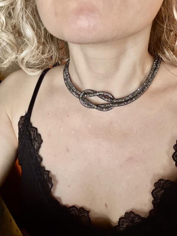 Чокер, ланцюжок з вузлом. Блискучий. Срібного кольору. Легкий. 44 см довжиною Пересилаю за передоплатою або безпечною доставкою