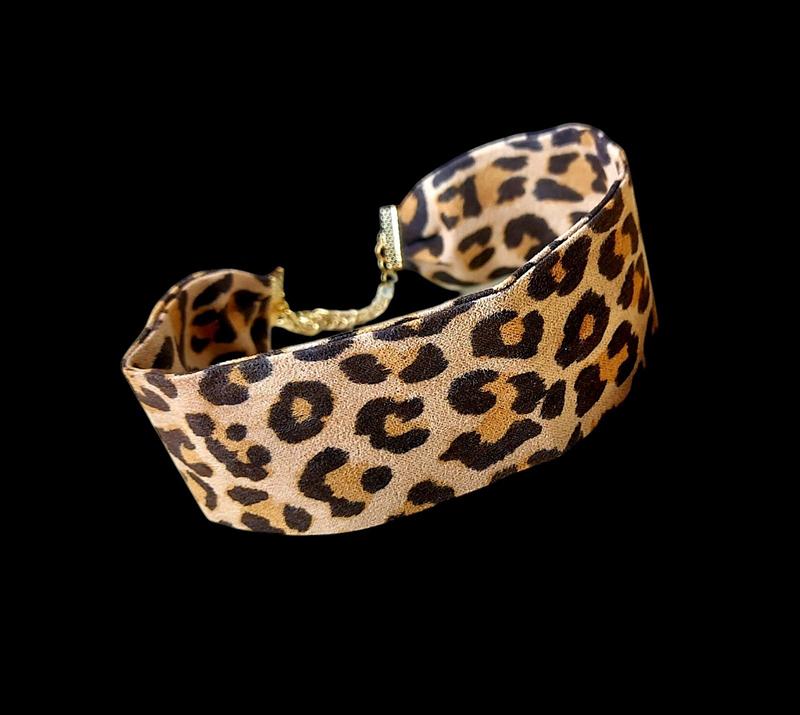 Чокер леопардовый принт плотная тканевая конечности в металлической фурнитуре золотистого цвета чокер длиной 28+10см ширина 3.5 см