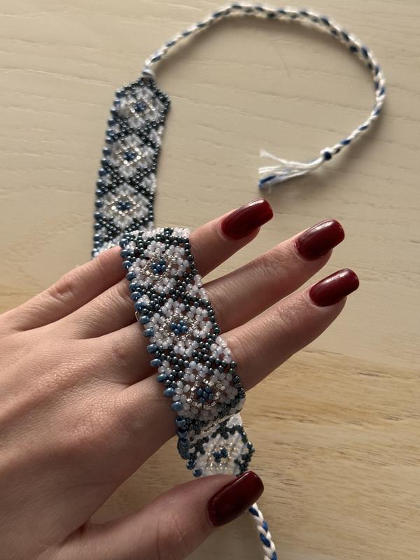 Чевок длина 35 см + завязки по которым можно регулировать, чешский бисер.