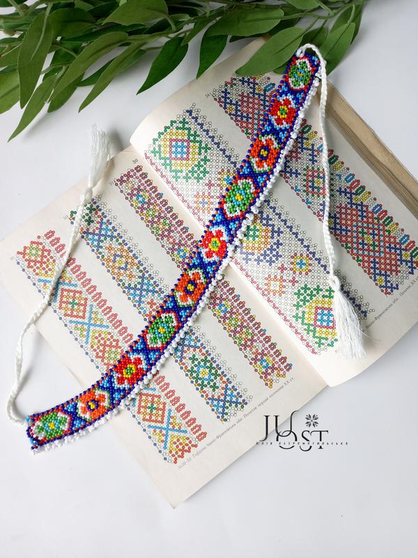 Украинская традиционное украшение с Ивано-Франковской области начала первой половины ХХст. Сделано из чешского бисера. Длина 35см + завязки по 18см,ширина 2.5см