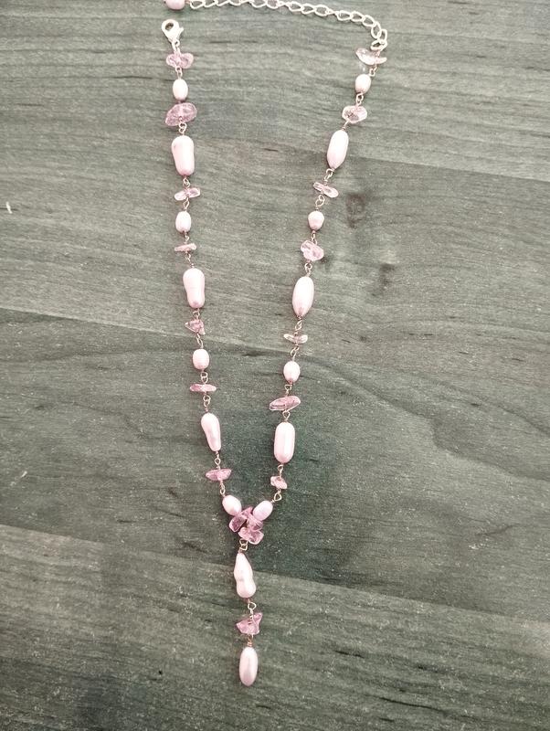 чокер длиной 43см нежно сиреневого цвета из натуральных материалов