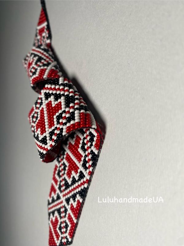 Стрічковий гердан із традиційним українським орнаментом. Гарно доповнить ваш образ. Довжина прикраси 30см., ширина - 3,5см, завʼязки - по 18см.