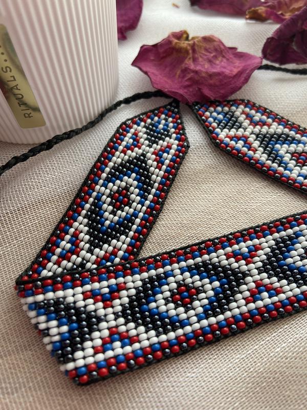 “Геометрия традиций” – ленточный гердан с четкими линиями и символичным украинским орнаментом.